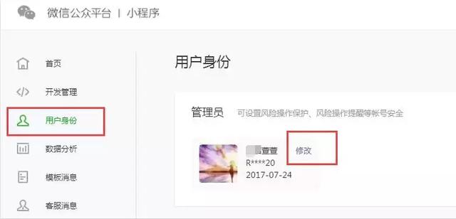 A:①、可以更換管理員,登陸小程序后臺→用戶身份→修改