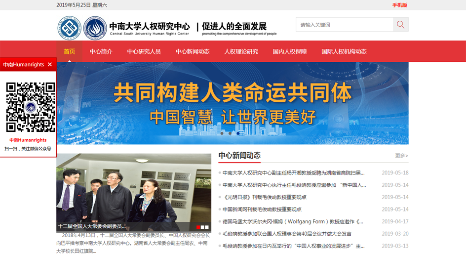 中南大學(xué)人權(quán)研究中心前身是2004年9月成立的中南大學(xué)司法與人權(quán)研究中心。2005年,中南大學(xué)司法與人權(quán)研究中心被評為校級人文社科重點(diǎn)研究基地,同時確定為省級候補(bǔ)研究基地,也是中宣部登記備案的人權(quán)研究機(jī)構(gòu)。2017年,經(jīng)學(xué)校研究決定,中南大學(xué)司法與人權(quán)研究中心更名為中南大學(xué)人權(quán)研究中心。