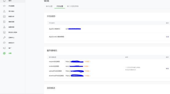2、在“設(shè)置-開發(fā)設(shè)置”里,配置好服務(wù)器域名